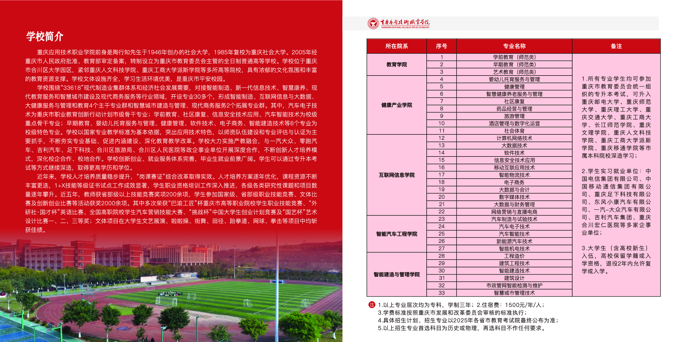 重庆应用技术职业学院2025年秋季普通高考报考指南