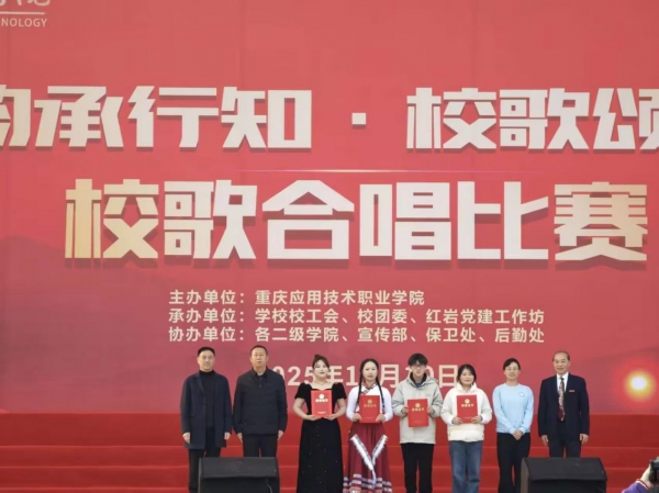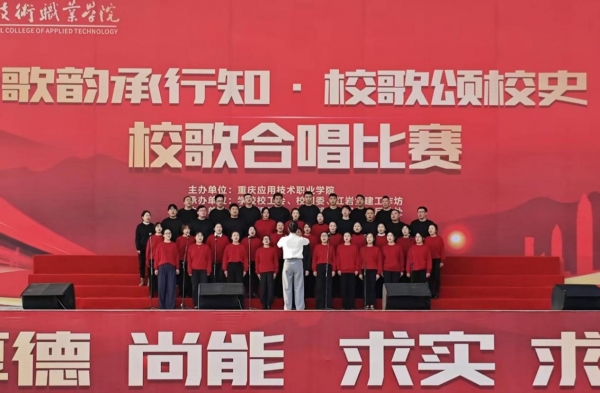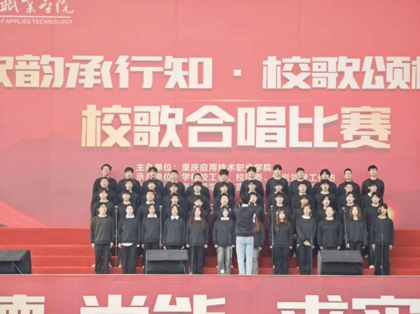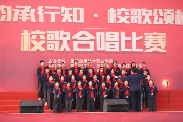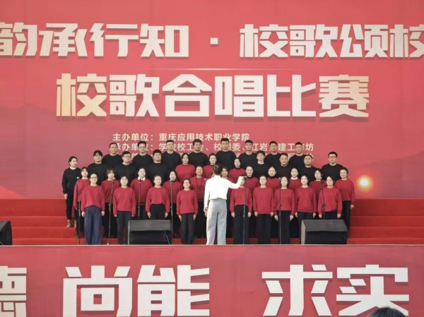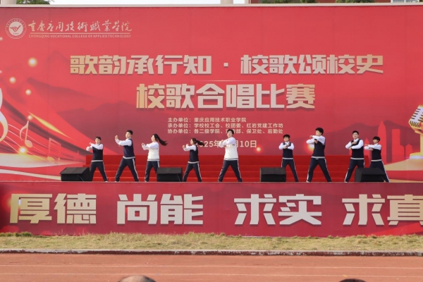 比赛在热烈的开场舞蹈《青春节拍》中拉开序幕,校艺术团、音乐社及国旗仪仗队携手演绎,展现了青春的活力与激情。来自各二级学院的12支合唱团队依次登台,其中包括4支教师合唱团和8支学生合唱团,他们均以校歌为演唱曲目,用歌声诠释了对校歌的深刻理解与热爱。比赛中,教职工组以沉稳深情的演唱展现师者风范,通过层次分明的声部编排传递校歌的厚重底蕴;学生组则以轻快灵动的演绎诠释行知精神,借助富有创意的队形变换彰显青春活力。各参赛团队通过多声部交织与舞台情境设计,将校歌与校史脉络紧密结合,呈现出一场声景交融的校史颂歌。