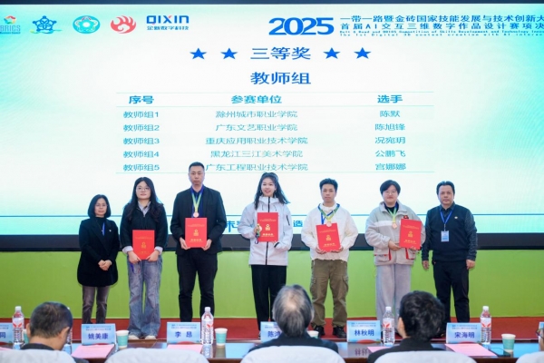 2025年12月6日在湖南益阳举行“2025年一带一路暨金砖国家技能发展与技术创新大赛—首届AI交互三维数字作品设计赛项总决赛,互联网信息学院况宛玥老师,与来自全国33支优秀教师队伍参加决赛,凭借严谨细致的备赛态度、精益求精的专业追求与攻坚克难的钻研精神,荣获三等奖。
