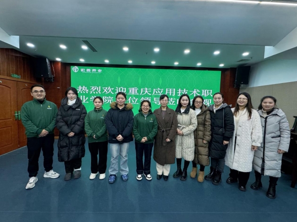 2026年1月20日,学校党委书记何菲带队,赴重庆宏善养老·康乐源养护中心参观交流,并与在岗实习生开展专题座谈。