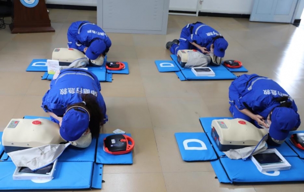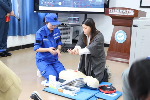 现场专业导师演示心肺复苏标准操作,师生代表分组实操练习,互动氛围热烈。后续基地将联合企业开展急救培训、应急演练及公益科普活动,助力平安校园、健康校园建设。(供稿:健康产业学院/韩利媛)