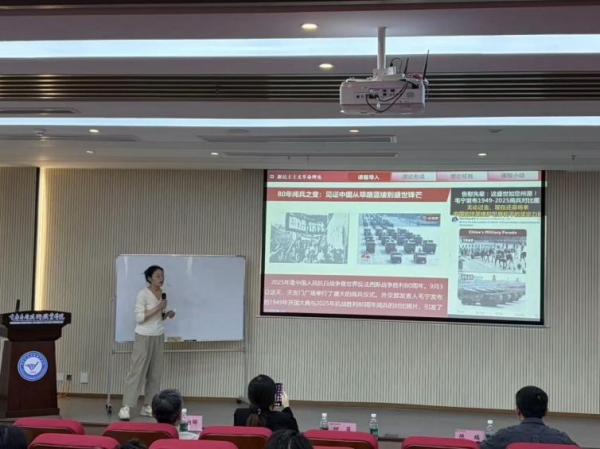 比赛正式开始前,学校党委书记何菲致辞,并对老师们提出了殷切希望。她强调,思政课教师要涵养高尚师德,争做“为学、为事、为人”的“大先生”,使思政课更接地气、更有温度,真正走进学生心里。她勉励参赛教师凝心聚力,充分展示教学特色,也希望观摩教师珍惜机会,互学互鉴。