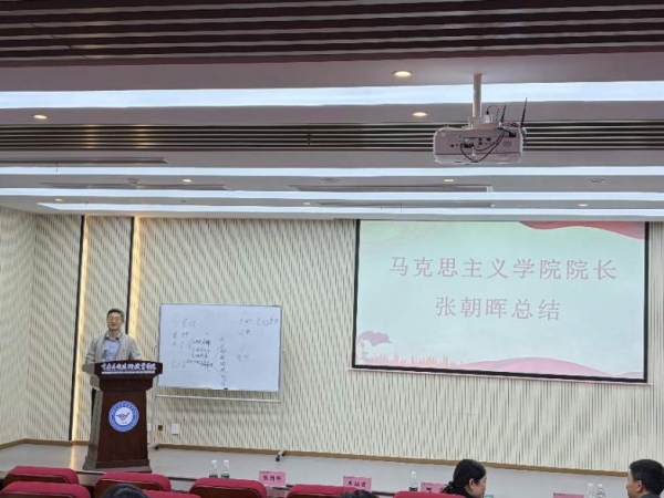 活动最后,马克思主义学院院长张朝晖在总结中指出,今天的比赛既是一场竞技,更是一场“教学盛宴”,在全体老师们的刻苦努力下,在评委专家辛勤付出和精准把脉下,比赛取得了圆满成功,达到了“以赛促教、以评促建”的目的。他充分肯定了老师们扎实的功底和饱满的热情,也客观指出了目前存在的问题和不足,勉励每一位马院人要更加用心、用情、用功地打造学生真心喜爱、终身受益的优质思政课,希望老师们团结一致、携手并进,共同书写马克思主义学院铸魂育人的崭新篇章!